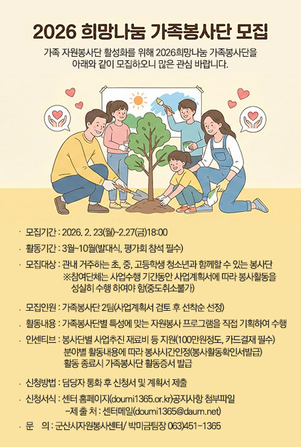 2026 희망나눔 가족봉사단 모집..